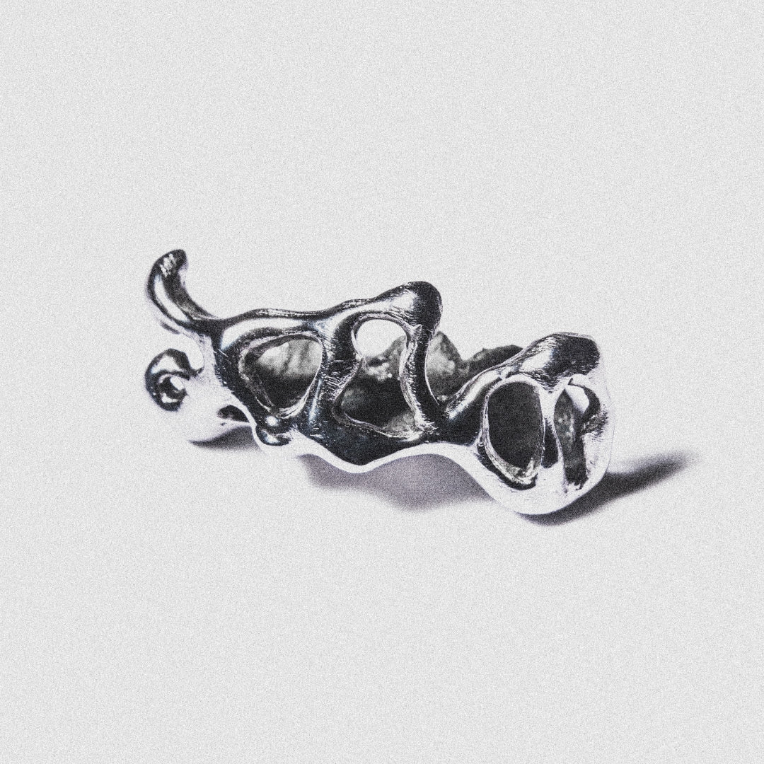 Tres piezas en Cromo-Cobalto con diseño líquido derretido.
