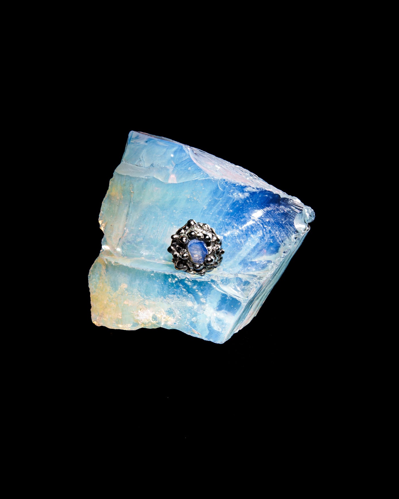 Una pieza que no necesita acompañantes. Cromo-Cobalto y aguamarina sintética: el lujo líquido.