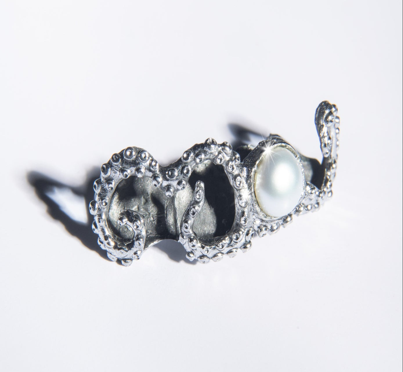 Cuatro piezas en Cromo-Cobalto con diseño de pulpo y perla sintética.