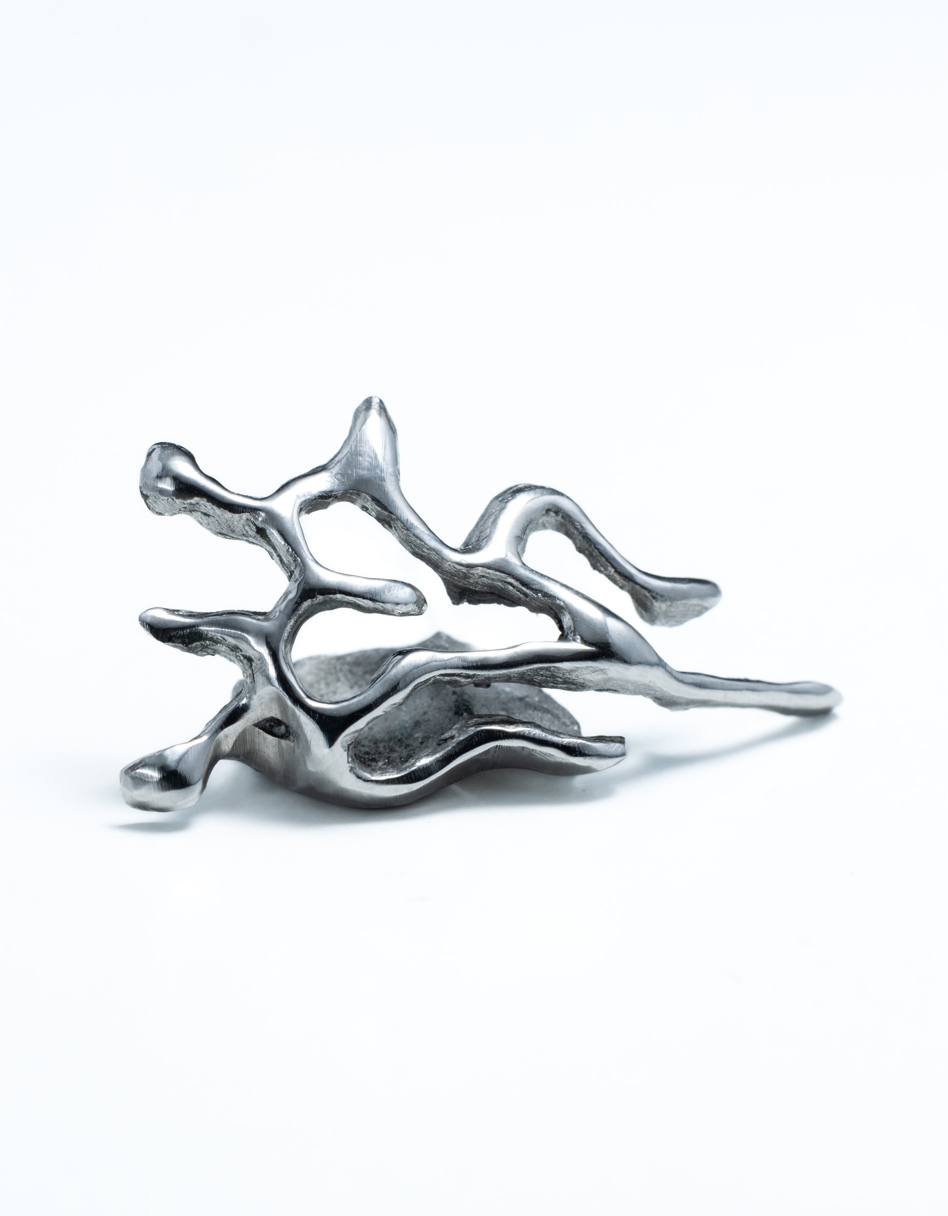 Dos piezas en Cromo-Cobalto con diseño afilado y forma orgánica.